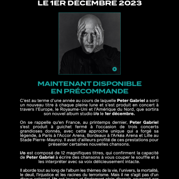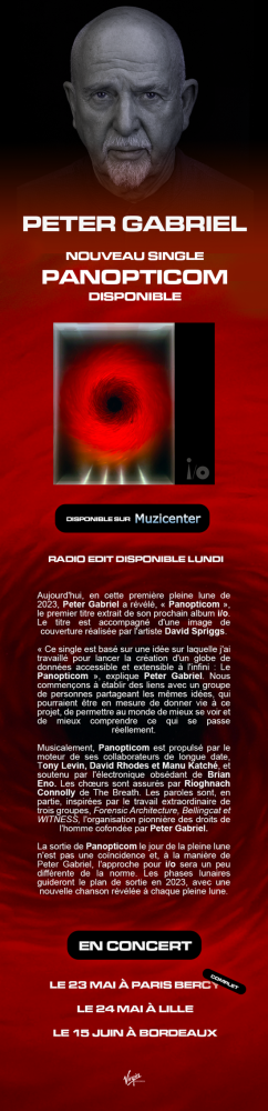 Peter GABRIEL, écoutez le 1er single de son nouvel album. Son concert à Paris est complet !
