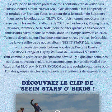 TURNSTILE plus ambitieux que jamais avec 'LOOK OUT FOR ME', nouvel extrait de son nouvel album disponible le 6 juin ! A voir en concert au Hellfest !