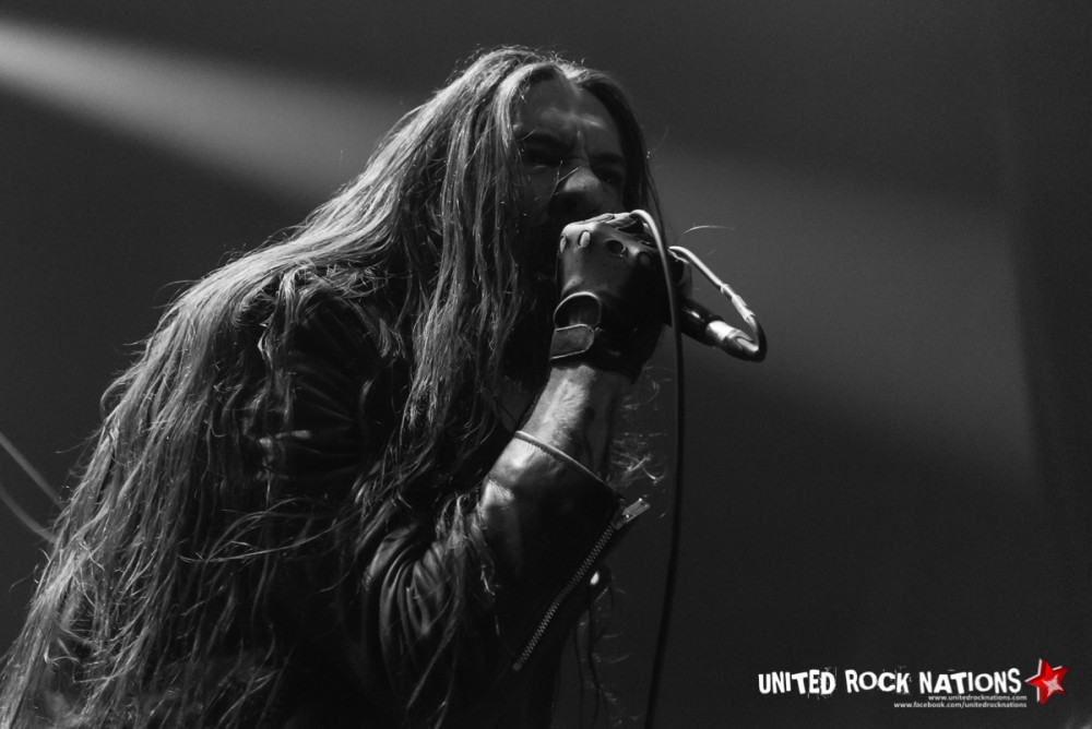 La foule s'agglutine le long de la crash barrière, il n'y a aucun doute à avoir, l'arrivée devant nous de Sepultura est pour très bientôt. Le fond sonore s'arrête, on coupe les lumières de la salle et on allume celles de la scène pour accueillir enfin Sepultura. Pour ceux qui ne le sauraient pas Sepultura est un groupe brésilen fondé il y a 24 ans par les frères Cavalera. De cette époque faste il ne reste de la formation que Paulo Jr à la Basse et Andreas Kisser à la guitare, le chant ayant été repris par Derrick Green et la batterie par Eloy Casagrande. On ne compte plus les albums de Sepultura mais c'est avec « I Am the Ennemy » et « Phantom Self », titres de leur tout nouvel album «Machine Messiah que Sepultura va ouvrir les hostilités. Ils enchaineront ensuite avec quelques anciens morceaux toujours efficaces tels que « Territory » et « Desperate Cry ». Derrick nous rappellera ensuite que la raison de leur présence à Paris ce soir est justement la sortie de « Machine Messiah ». Coté public dès les premiers accords joués par Sepultura celui-ci va tout bonnement exploser et ce sera une vague de fans qui viendra régulièrement s'échouer dans les bras de la sécurité voir sur la tête des photographes. Vous avez donc compris que c'est devenu de la pure folie dans la fosse et quand on n'est pas dans le tsunami humain c'est pour mieux s'arracher le cou dans de violents headbangs qui me feront surement souffrir pendant au moins deux ou trois jours… Andreas Kisser est toujours aussi révolté et montrera l'exemple à tous en ce qui concerne les headbangs tandis que Derrick semble possédé d'une rage enivrante qu'il nous transmet à chaque parole. Paulo Jr semble plus calme sur le coté gauche de la scène mais ses notes claquent dans l'air comme des coups de fouets qui vous remues les tripes. Il n'y a pas à dire Sepultura en live c'est énorme et que dire quand le torrent de thrash qui nous submerge achèvera les survivants avec « Refuse-Resist » et « Arise » ??? Ca pique !!!