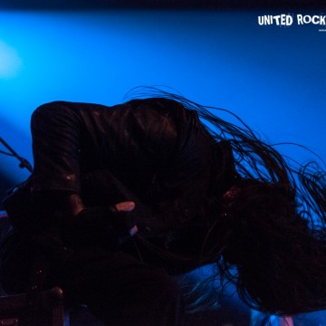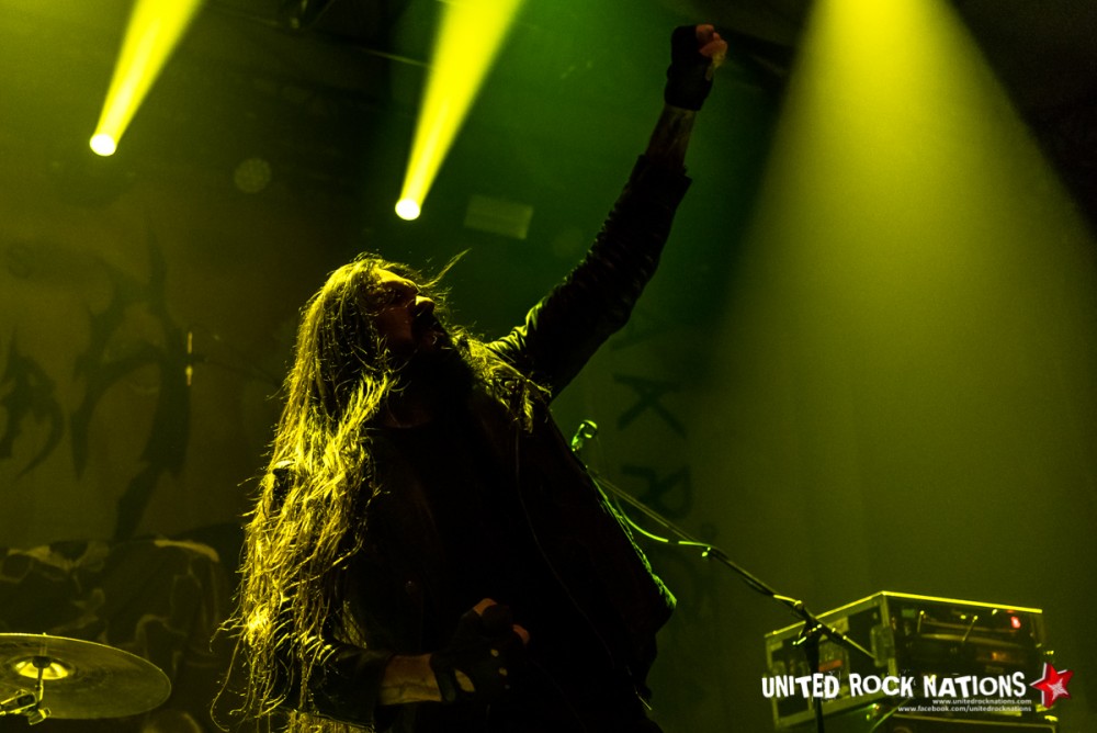 Petite pause bière tranquille avant de remettre le couvert avec Goatwhore groupe de Black Metal américain, de la Nouvelle Orleans, qui a vu le jour en 2003. Il est venu défendre les couleurs de son quatrième et nouvel album « Vengeful Ascension ». Nous noterons la blessure de Ben Falgoust (chant) qui devra passer la totalité du set les fesses rivées sur un tabouret de bar car sa jambe droite est plâtrée, ceci dit cela ne l'empêchera de faire virevolter sa longue tignasse mais je pense, vue l'énergie qui semble l'habiter, qu'il aurai aimé courir un peu partout. Et courir un peu partout cela n'aurai pas été difficile en étant porté par le musique de Goatwhore qui est plutôt rapide tout en étant à la fois bien pesante. L'énergie du groupe déclenchera quelques mouvements désordonnés au sein du public qui apprécie clairement la prestation de Goatwhore. On retrouve avec Goatwhore les bons vieux manchons cloutés qui annoncent que le son qui va venir nous percuter risque bien de nous clouer sur place. Et bien on ne sera pas déçu car en effet le Black Metal de Goatwhore est un vrai roulant compresseur annonciateur du Chaos… Une prestation sombre, dans tous les sens du terme, qui est à l'image de ce que nous sommes venus chercher ici ce soir !!