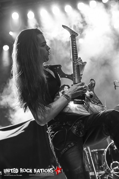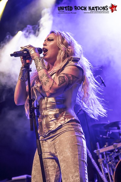 C'est donc aux Canadiens de KOBRA AND THE LOTUS d'ouvrir la soirée. Emmenés par la magnifique KOBRA PAIGE, ils vont avoir trente minutes pour séduire les fans présents avec leur Metal/Rock. Habillée d'or de la tête aux pieds, KOBRA fait une entrée sur scène remarquée et a été créditée d'une performance très énergique. La belle est en voix et fera le maximum pour réveiller une partie du public nonchalant. L'osmose avec le reste du groupe est totale mais il est vraiment dommage que le groupe soit desservit par un son pas toujours optimal et brouillon. Durant la setlist, ils puiseront dans les trois albums à leur actif ainsi que leur dernier single en date “TriggerPulse“. Avec ce quatrième album à venir, espérons avoir la chance de revoir le combo dans des meilleures conditions et plus haut sur l'affiche. Il est à noter la très grande disponibilité de tout le groupe après le concert pour le plus grand plaisir de leurs fans.
