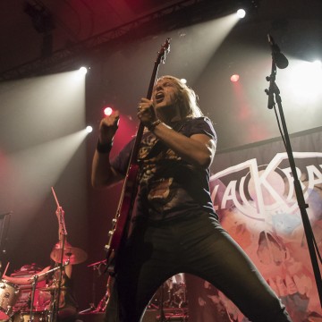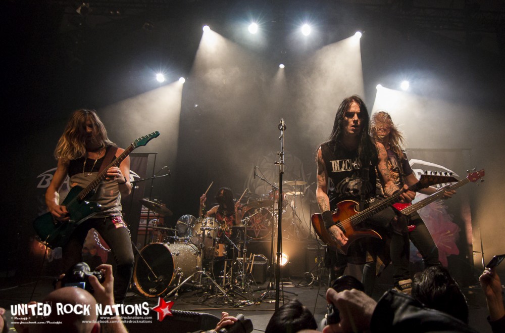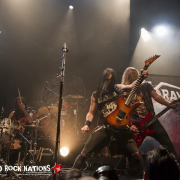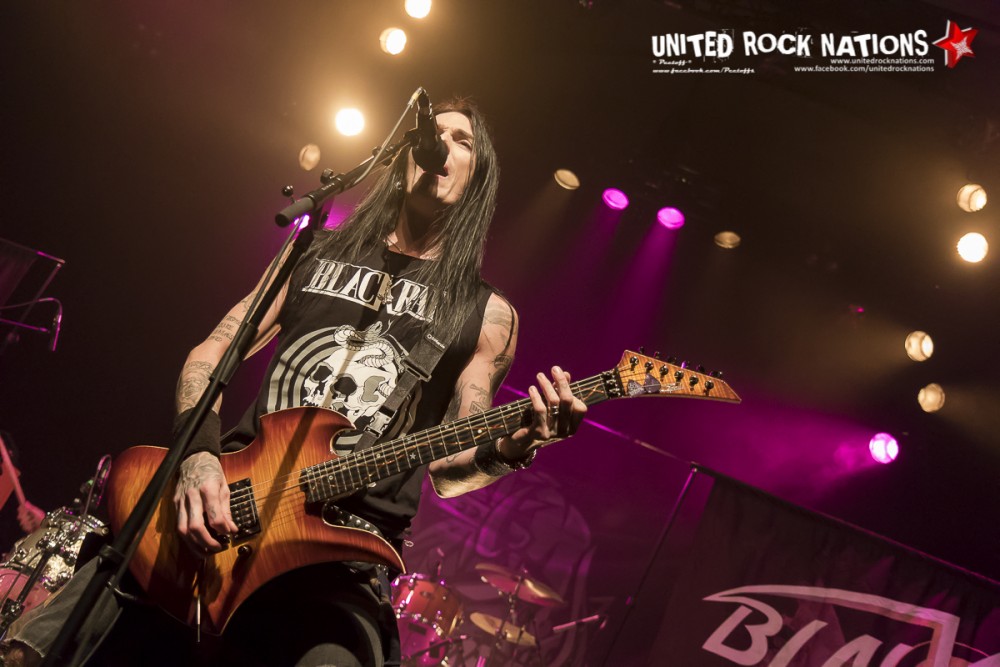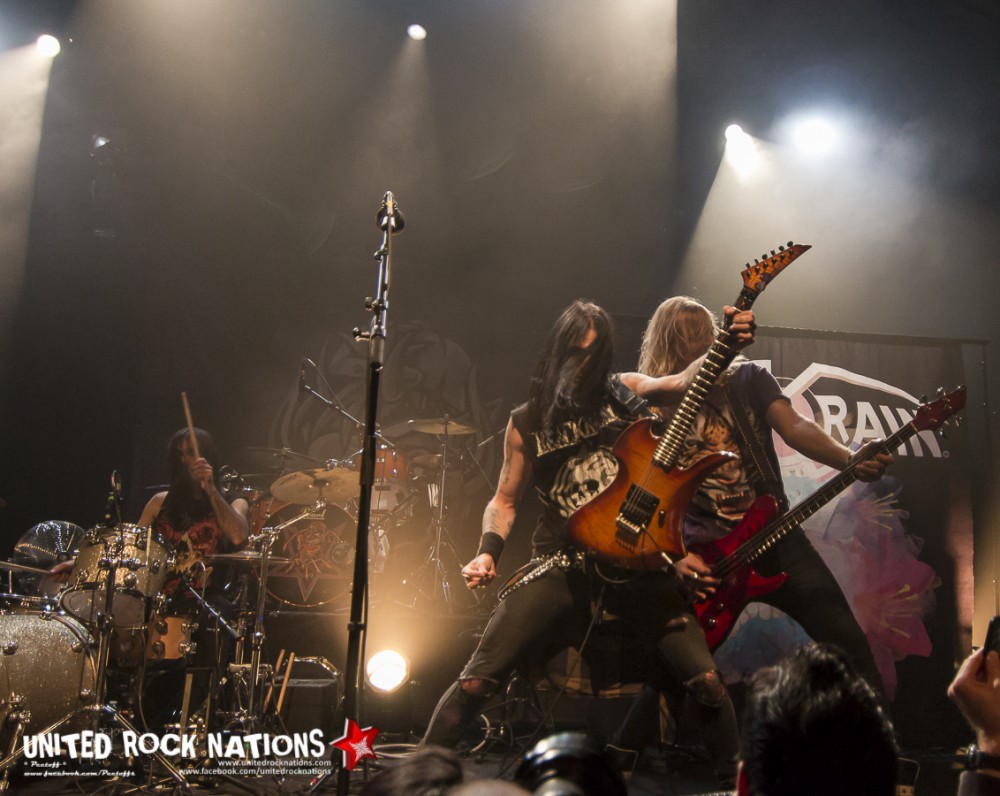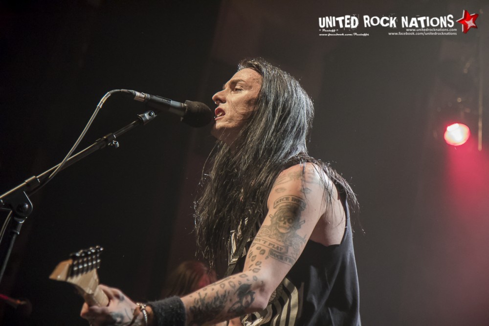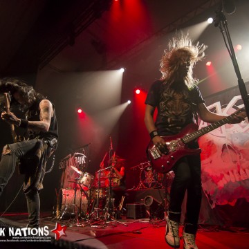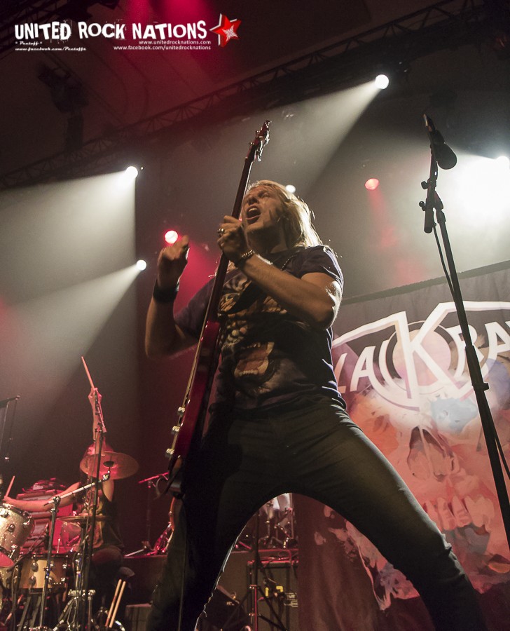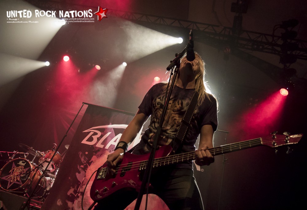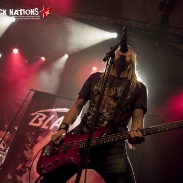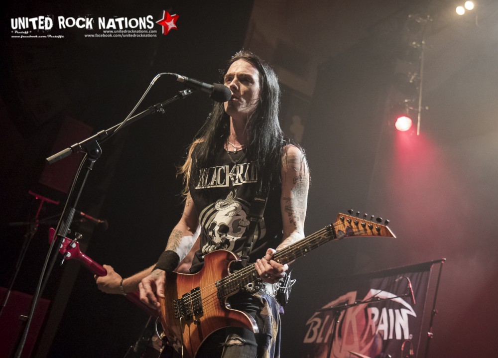 L’honneur de commencer la soirée revient aux Frenchies de BLACK RAIN. Pour les avoir vu il y a quelques années, la première constatation est que le groupe me paraît beaucoup plus libéré. La bande à SWAN investit la scène avec un esprit festif et une flagrante envie de communication avec son public, qui pour l’occasion occupe les premiers rangs. Les titres s’enchainent sans temps mort et avec efficacité. Si à la vue de l’affiche on aurait pu se poser la question sur la présence des quatre “GlamRockeurs“, preuve est de constater qu’ils chauffent la salle avec brio. L’interprétation est sans failles et les moments forts de la setlist seront pour moi, “Rock Your City, Overloaded, Blast Me Up et Rock My Funeral“.