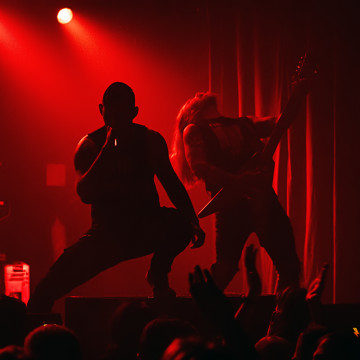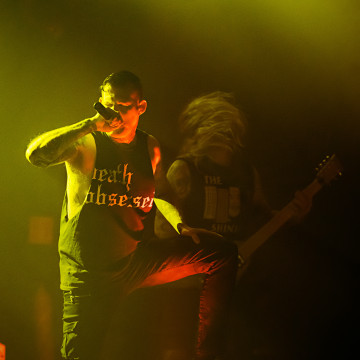 Quelques jours avant leur passage à Paris sortait leur dernier album “Vault of Horrors” (Nuclear Blast) - avec ses références évidentes au cinéma du genre - et on peut dire aisément que le public était invité à fêter dignement cet événement. Sven lance les invitations : “S'il y'en a qui veulent monter sur scène ils peuvent. On a l'habitude. Foutez le bordel ! ” La fosse qui s’est largement remplie ne se fait prier et c’est la violence, et les stage divings s’enchainent.