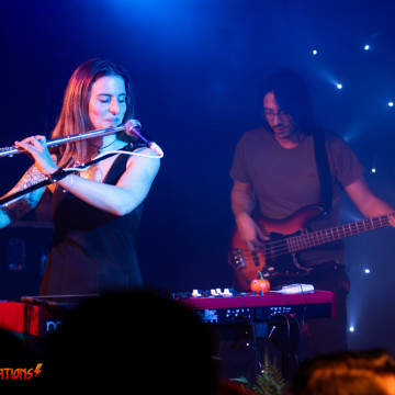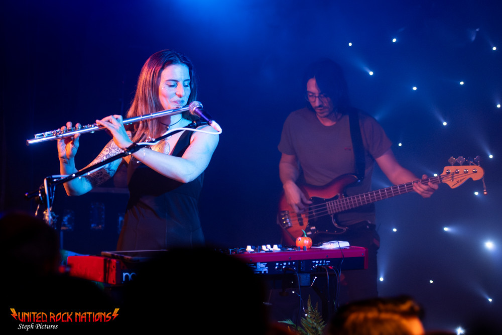 Après un changement de set qui se fait sur le son des vagues s’écrasant sur la côte et accompagné de quelques notes de musique, les lumières s’éteignent et des applaudissements vigoureux se font entendre. N’ayant besoin d’aucune introduction, Cellar Darling se lance dans ‘Dance’ sur lequel Anna Murphy dégaine sa flûte traversière, qu’elle ressortira d’ailleurs assez souvent ce soir. Les premiers morceaux de la setlist souffriront d’un petit déséquilibre du son qui met la basse très en avant des autres instruments, au risque de les écraser. Après cette entrée en matière, la chanteuse prend la parole : « Bonsoir Paris, ça va ? Mon français est très mal (rires) that’s why I’m gonna switch to English! J’apprends à l’école mais j’oublie (rires du public). It’s really nice to be back here! So we are Cellar Darling from Switzerland and, as your noticed, it’s a very special tour and a very special night for us and I hope you enjoy it! We’re going to play some songs from ‘The Spell’ which is our latest album. »
