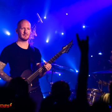 C’est d’ailleurs à ce même moment que le groupe nous révèle que les petites citrouilles disposées un peu partout sur scène sont l’une des petites blagues qu’I Am The Morning et Cellar Darling se sont jouées pour cette dernière date. Les extraits de « The Spell » (2019, Nuclear Blast) s’achèvent avec ‘Love’ et ‘The Spell’ avant que la chanteuse nous annonce un titre totalement nouveau, ‘Drone’, que le groupe a prévu d’enregistrer s’il plaît aux fans. A partir de ce moment du show, les musiciens se détendent et se montrent beaucoup plus mobiles, se laissant aller de droite à gauche au rythme des morceaux ; étaient-ils stressés de nous présenter ‘Drone’ et s’apaisent-ils maintenant que cette épreuve est passée ? Pour conclure cette découverte musicale, Anna Murphy repère deux petites filles au premier rang et leur demande ce qu’elles ont pensé de la chanson. Alors qu’elles sourient et lèvent leurs pouces en signe d’approbation, la chanteuse glisse un : « Children are always so honest! » qui fait sourire la salle.