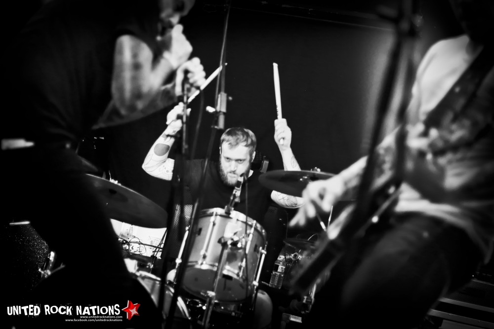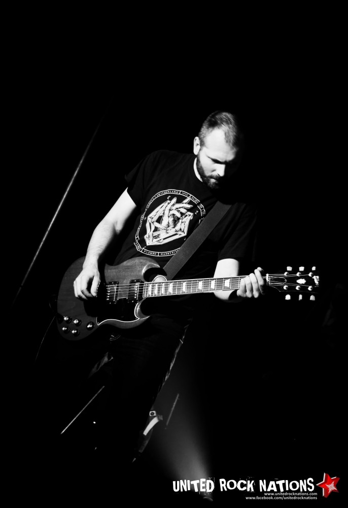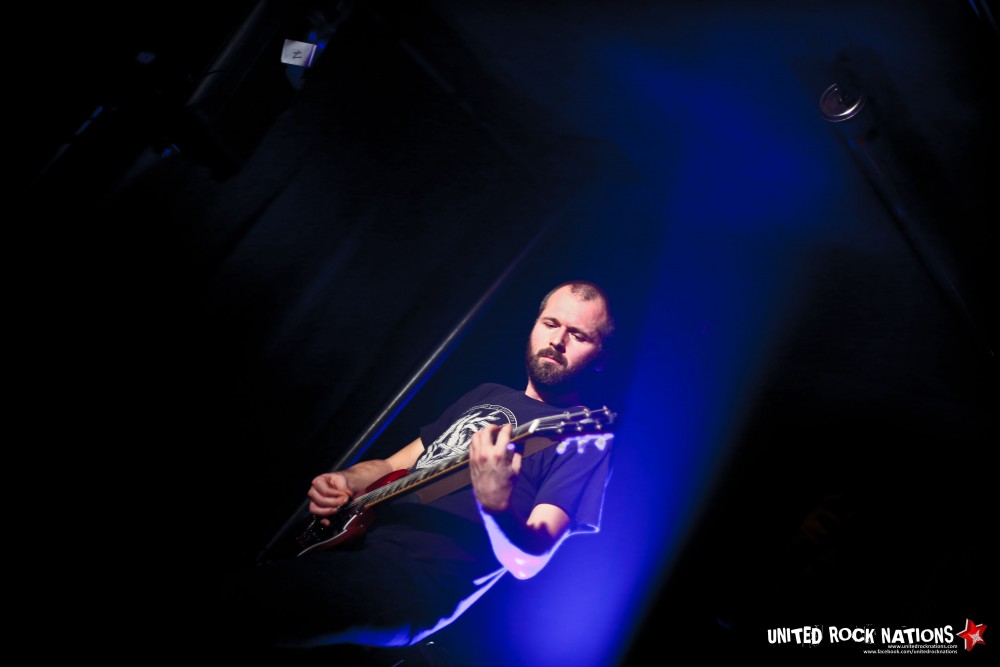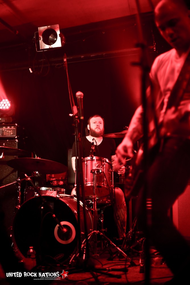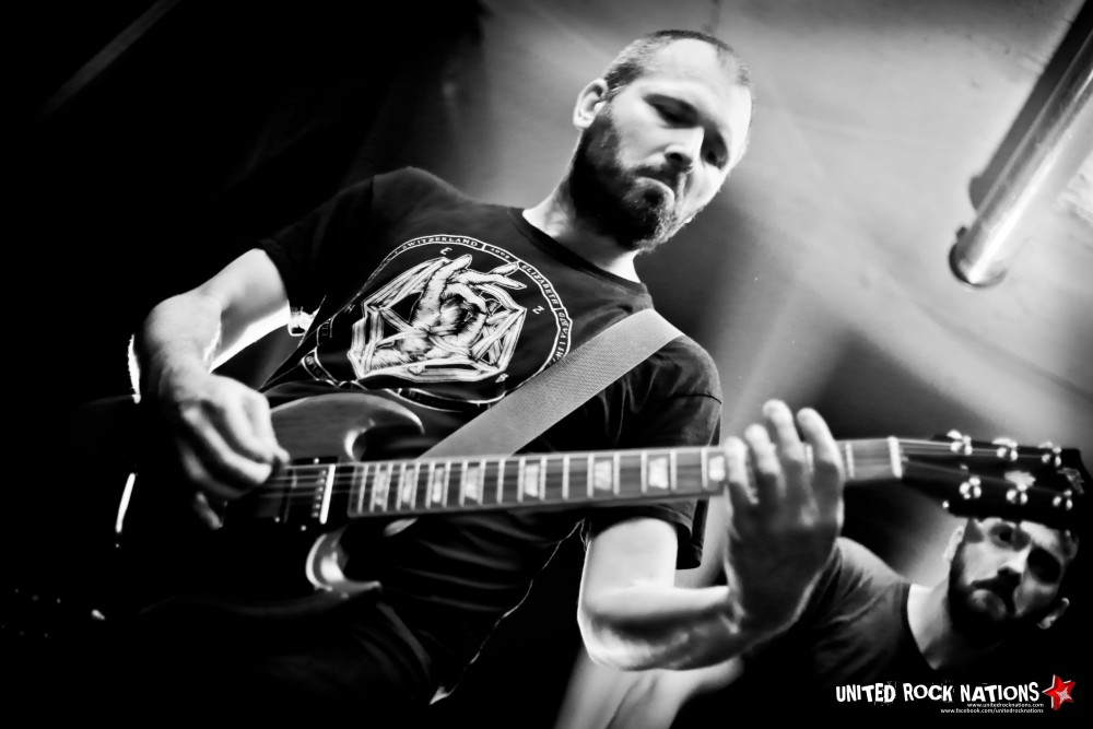 On commence avec le groupe Lord Humungus ! Le quatuor est vachement éclectique visuellement ! On a affaire à du Doom/Sludge avec un chanteur bien dark, un bassiste tout droit sortie de Harvard, et un batteur et gratteux apportant le côté psychédélique qu'on attend dans un bon groupe de ce genre ! Les premiers riffs à la lourdeur bien typique nous dévoilent le chemin vers un univers cauchemardesque et mélancolique tandis que la voix nous transporte dans les limbes d'une noirceur aveuglante. Le groupe semble jeune, mais tient bien son sujet. Malheureusement pour eux, notre amis « Sérgio » a voulu s'inviter sur scène… Il s'y est repris à 3 fois avant de réussir à grimper sur cette haute scène ! Tombant lamentablement à la 2éme reprise… Après s'être vu refusé le mythique Slam par un public amusé, notre bon Sérgio a tout de même sauté… avec élan… s'écrasant à nouveau… lamentablement… Mais il en faut plus pour Sérgio ! Et il se releva ! Pogotant tel un Clown du Chaos, dans des fans peu contents de voir leur bière les arroser, plutôt que de les désaltérer... Et n'oublions pas l'ingé-lights qui ajouta à tout ça, sa folie lumineuse…