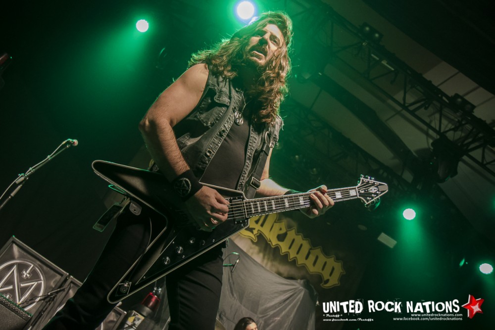 Comme à leurs habitudes dès le début du show, le son, les lights et la grande maîtrise technique sont au rendez-vous. Et je ne vous parlerais pas de l'énorme énergie que dégage le groupe, sans oublier ces larges sourires qui illuminent les visages des cinq musiciens. Après un DIE BY THE SWORD qui, c'est le moins que l'on puisse dire, réveilla le public, le groupe enchaine direct avec un autre Hymne, STALINGRAD, qui permettra a MARK TORNILLO de brandir avec fierté l'étendard du groupe. Notre homme et d'ailleurs une fois de plus en grande forme à l'image de WOLF HOFFMAN qui ne lasse pas de jouer avec les photographes et le public. Il ne faut attendre plus longtemps pour que le groupe nous envoie deux méga classique de sa longue discographie avec RESTLESS AND WILD et LONDON LEATHERBOYS, qui seront repris en choeur par les fans chauds bouillants.