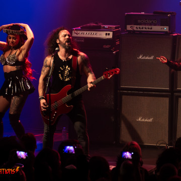 Le groupe nous embarque de suite avec son rock australien (on sent bien les inspirations…) puissant et rapide, notre attention bien que complète monte d’un niveau quand dès le second titre nous voyons débarquer 4 danseuses toutes aussi sexy les unes que les autres…