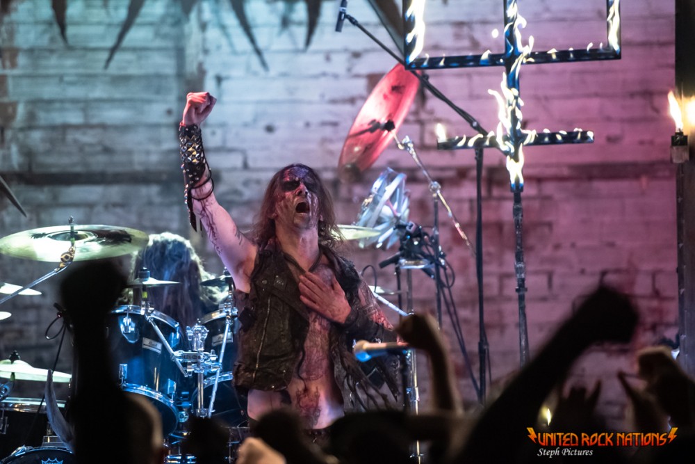 Pas de première partie et majoritairement des fans (on est pas venus là pour niaiser concrètement) … C’est dans ces conditions que le rituel commence avec « Death’s Cold Embrace » puis « Malfeitor » une fois les incontournables tridents enflammés par Erik Danielsson le frontman et chanteur.