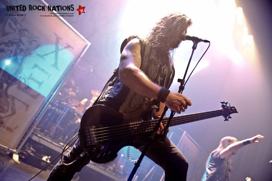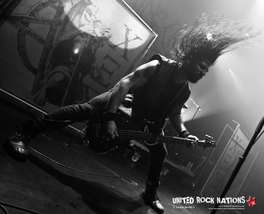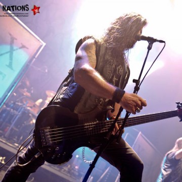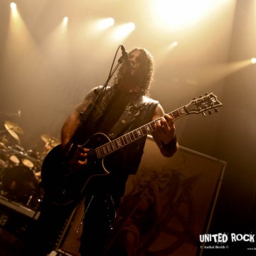 Ce titre est un bon interlude pour le reste du concert où les athéniens vont passer en revue le reste de leur discographie survolant ainsi une carrière de 30 ans avec le très court et efficace ‘The Sign Of Evil Existence' qui aura le mérite de déchainer encore plus le public pogotant plus que de raison. Les artistes en faisant autant sur scène particulièrement Van et Georges headbangant sans cesse, jambes écartées, leurs instruments presque posé sur le sol.