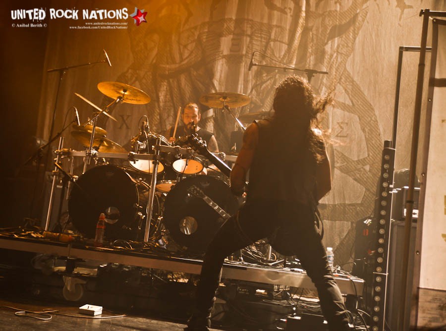 On ressent profondément l'univers du dernier album du combo avec ses plans musicaux puissants et sombres accentués par le chant incantatoire du frontman. On se sent vite envoûté par l'ambiance presque fédératrice de cette messe noire à la limite du sacrifice et d'autant plus, deux titres plus loin lorsque Sakis seul exposé sous la lumière, le reste des musiciens dans l'ombre, entonne le guerrier « Apage Satana ».