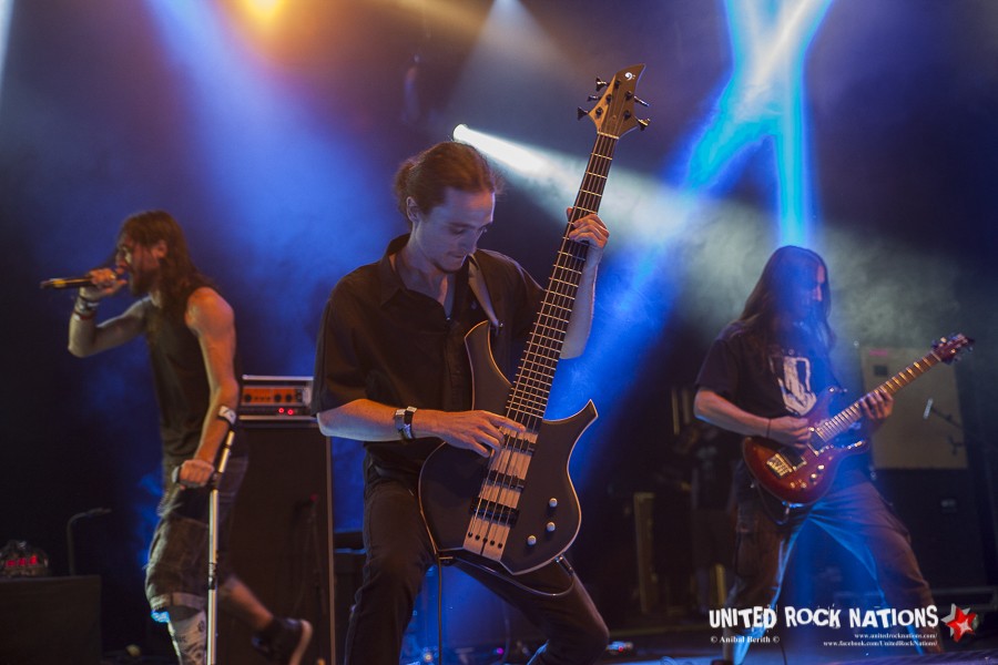 Tout commence par l'arrivée de Simon en béquilles, la jambe dans le plâtre ! Du coup on peut dire qu'il fera bien mieux que la prestation d'Axl Rose sur la tournée d'AC/DC qui avait fait le choix de rester assis... Ce n'est pas le cas de Simon qui sillonnera la scène de toute sa largeur à cloche pied faisant le show accompagné du reste du groupe qui joue vite et fort ! Leur Death Metal mélodique puissant et percutant va embarquer le public dans un bon circle pit tout le set durant.