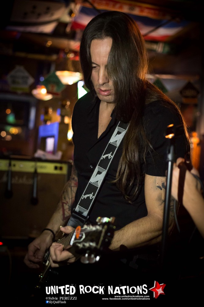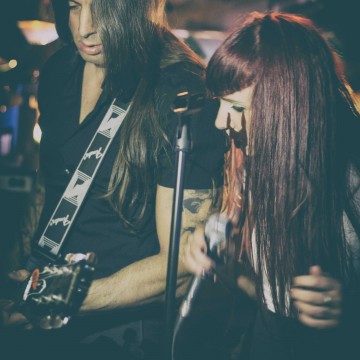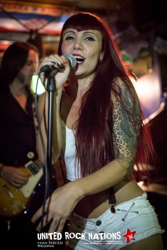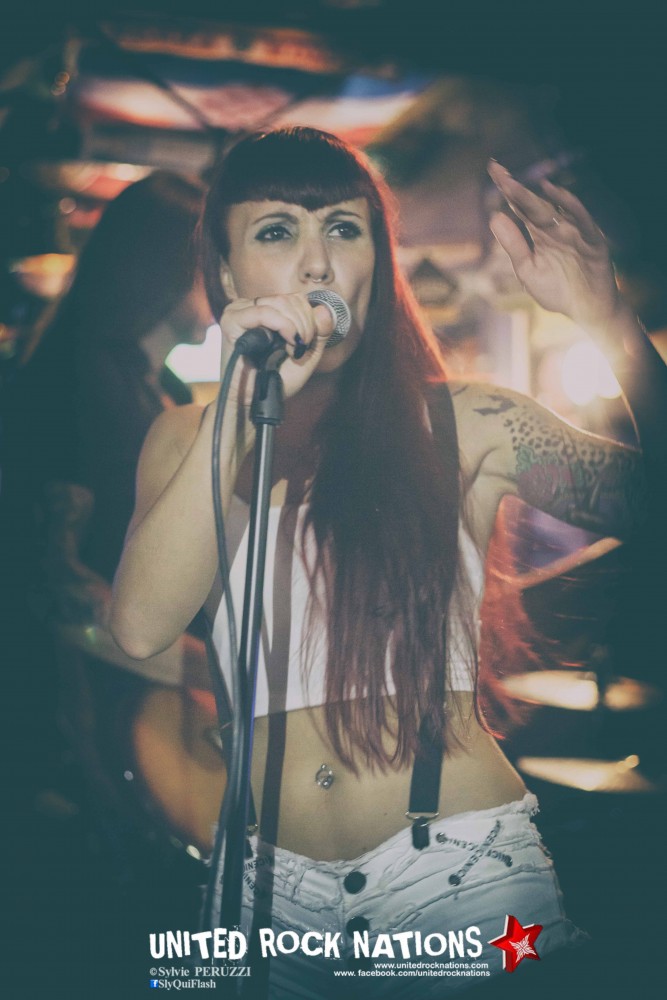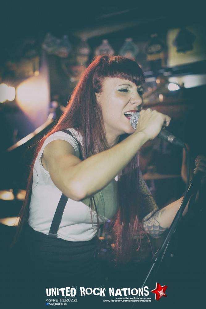 Le batteur, Christophe Castaldi que nous connaissons déjà du groupe Splash Macadam, le bassiste Ju Bch et les fondateurs du combo, couple aussi dans la vie Jess K (lyricks, vocal) et Nic K. ( lyrics, guitars, vocals) sont confinés dans un coin de la salle.