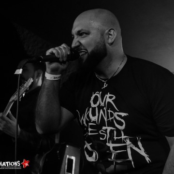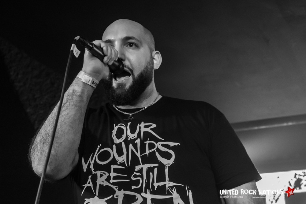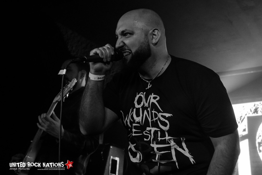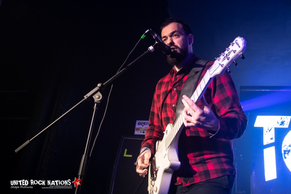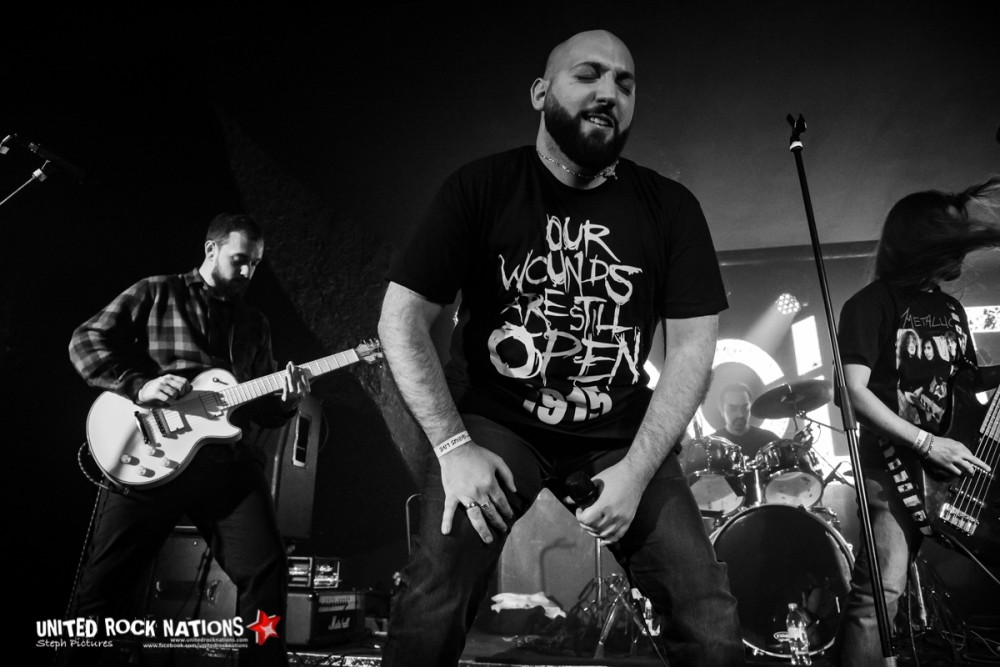 C'est parti pour le premier groupe avec l'arrivée sur les planches du Gibus de Too Late, jeune groupe de Rock Metal du Val de Marne qui vient tout juste de fêter ses trois ans. Précisons que ce soir sera la grande première de Vartan YORGANCIYAN (chant) sur scène ce qui n'est jamais une chose aisée. Bien que sa première fois soit toujours une chose stressante il ne faudra que peu de temps à Vartan pour se lâcher et le déclencheur sera probablement la reprise de ‘Breed' de NIRVANA. Le reste du groupe à l'image de Thomas TOUFFLET (guitare) et de Victor LACHAUD (basse) semble vraiment à l'aise et fait montre d'une certaine expérience de la scène.