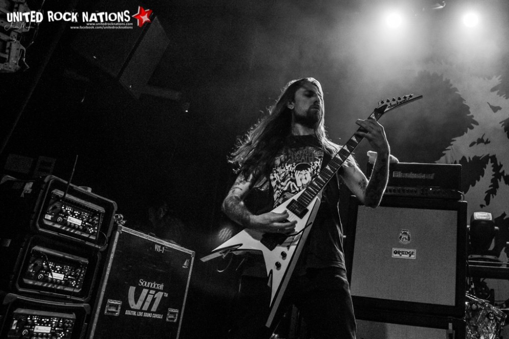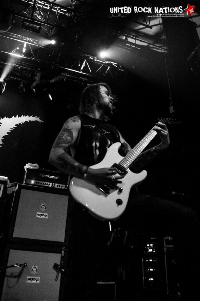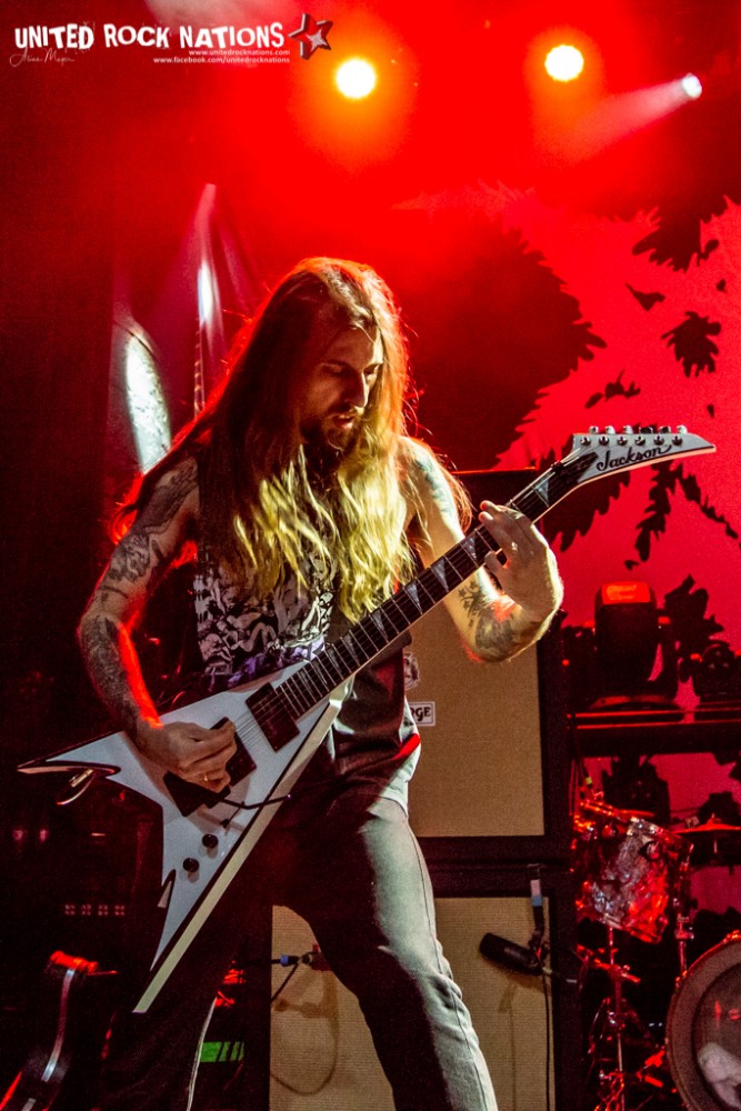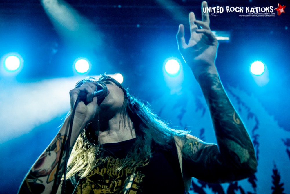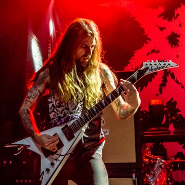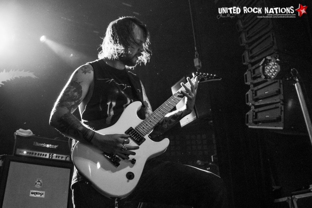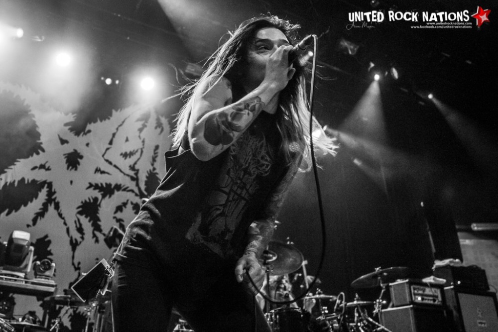 Il est un peu moins de 21h quand la salle pleine à craquer entonne en choeur le fameux « Run to the Hills » des légendaires Iron Maiden. Et vous savez pourquoi c'est bon signe ? Trivium débarque sous peu ! Et comme Trivium n'a pas pour habitude de faire les choses à moitié, le groupe entame son set avec une énergie folle et sur rien de moins que le titre éponyme du dernier album, « The Sin and the Sentencce ». Matt Heafy livre une performance aussi bien vocale et musicale que scénique tout bonnement époustouflante. Alex Bent est on ne peut plus en place et martèle ses fûts comme personne, malgré une mise en scène qui ne le met pas forcément très en valeur. Corey Beaulieu, qui m'avait toujours semblé un peu trop frimeur lors des tournées précédentes, est cette fois-ci bien plus sobre et toujours aussi bon guitariste ! En revanche, malgré son charisme indéniable et sa présence scénique de haute volée, les choses vont vite se corser pour Paolo Gregoletto, lorsque dès le second titre du set un problème technique lui coupe la parole… enfin les cordes ! Le frontman meuble comme il peut tandis que le technicien s'affaire auprès de Paolo, mais en vain. Matt lance donc avec un peu de retard le très efficace « Betrayer », mais soudainement bien moins efficace sans basse… Durant quelques morceaux, il faudra pourtant bien s'y faire, Trivium devient temporairement un trio. Mais les techniciens sont des gens merveilleux, et des mines de solutions à tous les problèmes de la terre ! Après un moment de désespoir tout à fait perceptible sur son visage, Paolo est de retour, et il veut sa revanche ! Encore plus actif qu'à l'accoutumée, le bassiste donne du sien et le public le lui rend bien – avouons qu'il nous avait manqué ! Matt Heafy aura l'élégance de faire applaudir le brillant technicien qui a su dépêtrer la situation, et galvanise à nouveau les troupes qui s'essoufflaient un peu d'un « We are fucking back ! », clameur à la clé ! L'ambiance monte d'un cran avec « Becoming the Dragon », et la fosse commence à prendre cet air de champ de bataille qu'on affectionne tant. Un moment de répit puis c'est « Caustic are the Ties that Bind » qui vient nous dévisser le crâne à grand renfort de riffs heavy à souhait. Les deux derniers morceaux avant le rappel, tout comme le reste de la setlist, font bien sûr la part belle au nouvel album que le groupe promeut, mais sans oublier de contenter les fans de toutes les époques, ce qui peut parfois s'avérer acrobatique !