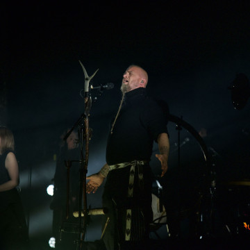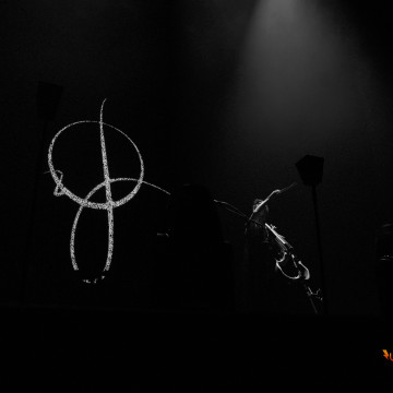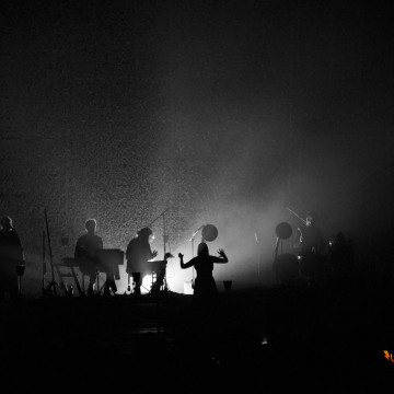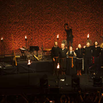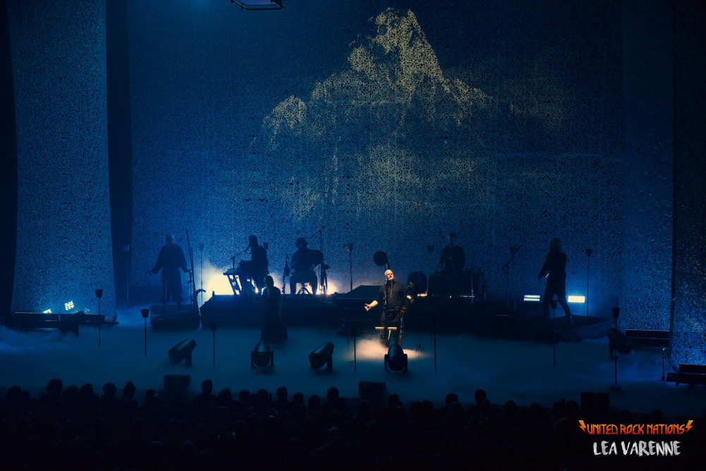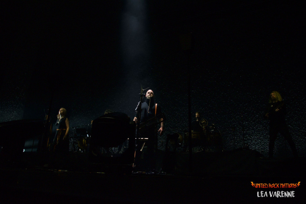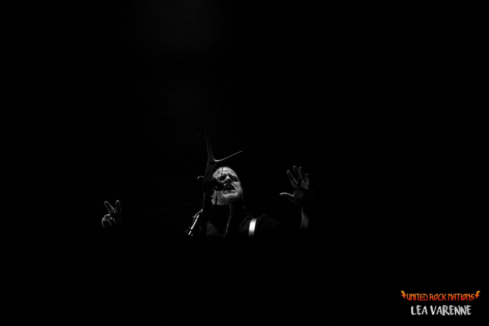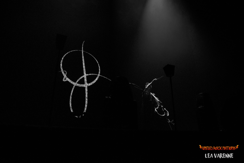 Sur fond orange dégradé, les 6 musiciens entrent sur scène tels des ombres, si bien que l’on croit voir apparaître devant nous des silhouettes de peintures rupestres. Pas un mot prononcé, un simple bonsoir et ils commencent leur set pour un public attentif et silencieux. J’apprécie l’ambiance de la salle, qui, plongée dans un autre temps, dans une autre dimension accompagnée de sonorités nordiques et viking, semble avoir été transportée tout droit en Norvège 900 ans auparavant.