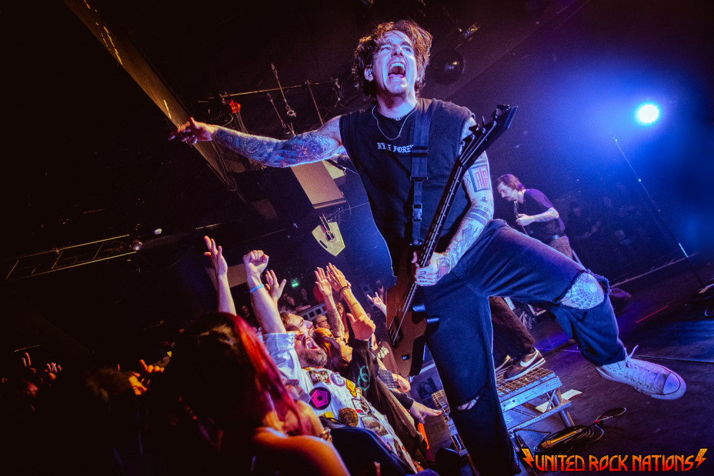 Sur le son du générique de Pokémon, le groupe canadien fait une entrée remarquée, mené par le très charismatique Kyle Anderson, qui remplit immédiatement la scène de sa présence. Le public, visiblement nombreux à les attendre, leur réserve un accueil tonitruant. Ambiance épique , voix gutturales puissantes, riffs massifs, lumière agressive et parfaitement synchronisée sur chaque frappe. La chaleur monte vite, les premiers crowd surfers apparaissent dès les premières minutes, et la salle se transforme en véritable fournaise.
