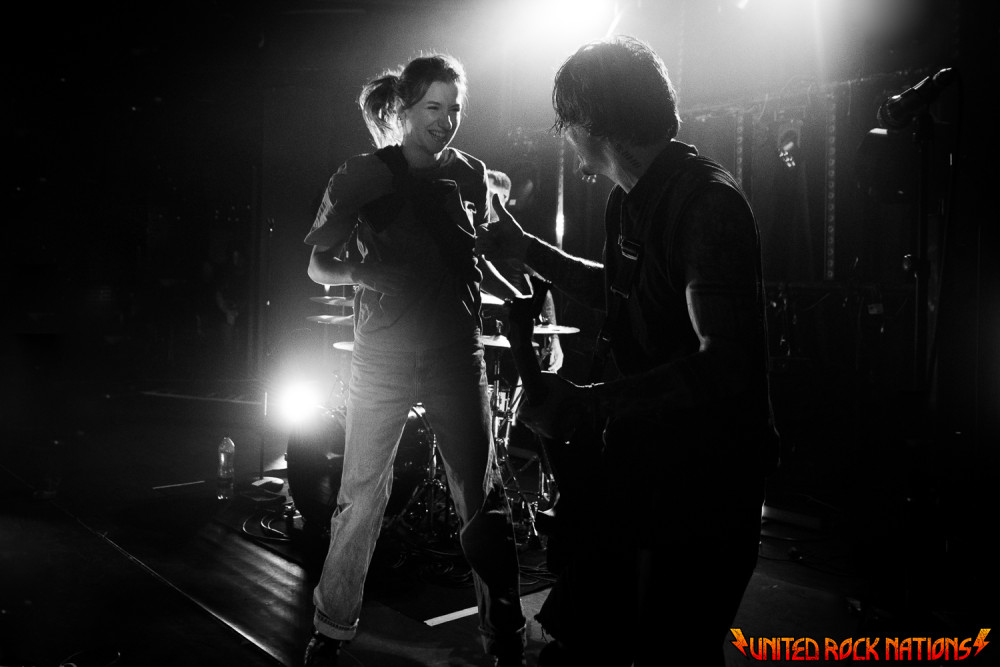 Ils ouvrent avec le très impactant “Bad Luck”, premier titre de All Is Beautiful... Because We’re Doomed, et la salle explose. L’ambiance est électrique : le bassiste virevolte, la scène tremble, et il devient presque impossible de circuler dans ce Trabendo survolté. Tentant de me frayer un chemin pour capturer quelques images, ma sangle d’appareil s’emmêle dans les pieds d’un slameur — me voilà propulsée en front row ! Quoi de mieux pour m’imprégner de l’ambiance ?