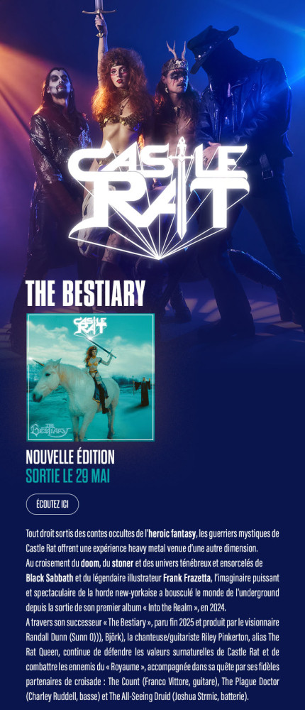 CASTLE RAT signe avec Lona Vista qui va ressortir l'album "The Bestiary". A voir en concert au Motorcultor le 16 août. https://i.castlerat.com/thebestiary Facebook : https://www.facebook.com/castleratband/ Instagram : https://www.instagram.com/castle.rat?igsh=NTc4MTIwNjQ2YQ%3D%3D YouTube : https://www.youtube.com/@castlerat Discord : https://discord.com/invite/ENxT2nRcwB