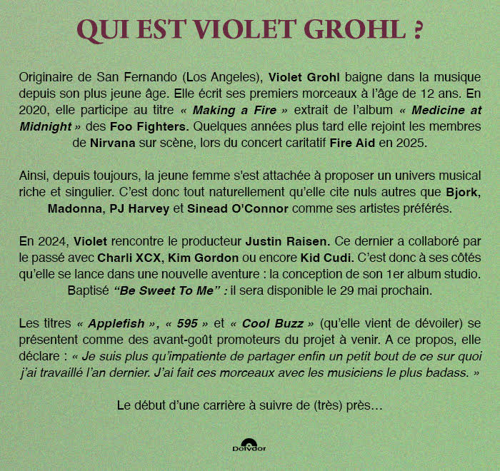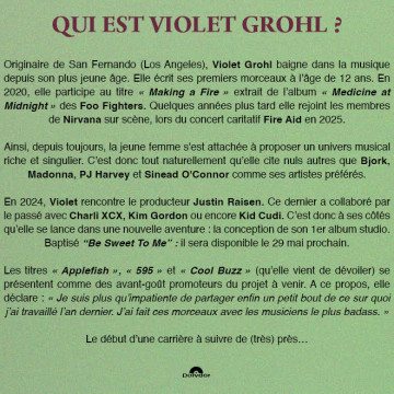 Continuez de découvrir l'univers de VIOLET GROHL avec son nouveau titre ''Cool Buzz'' Précommander : https://violetgrohl.lnk.to/BSTM-FR