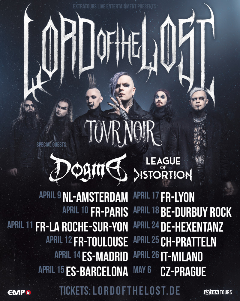 Depuis leur participation remarquée à l'Eurovision 2023 et le succès de l'album "Blood & Glitter", Lord Of The Lost s'est imposé comme une figure incontournable de la scène rock et métal internationale, enchaînant les tournées avec Iron Maiden. "OPVS NOIR Vol. 3" est décrit comme l'apogée créative du groupe, mêlant guitares puissantes, orchestrations symphoniques et messages empreints de compassion. Cet album se distingue par ses nombreuses collaborations prestigieuses, notamment avec Wednesday 13 sur le titre industriel 'I Hate People', ou encore Ambre Vourvahis de Xandria sur la pièce émouvante 'When Did The Love Break?'.