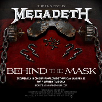 MEGADETH: BEHIND THE MASK, un événement cinématographique qui fera ses débuts sur les écrans du monde entier le jeudi 22 janvier, à la veille de la sortie du dernier album studio du groupe, prévue le 23 janvier.