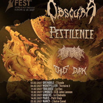 Le SHRED FEST est un festival itinérant annuel qui met à l'honneur un continent différent chaque année, réunissant certains des groupes de metal extrême les plus féroces et les plus virtuoses. À l'affiche pour cette édition européenne, qui proposera pas moins de sept étapes françaises : OBSCURA, rejoint par la légende PESTILENCE, les Britanniques de CRYPTIC SHIFT, les Danois de THUS et les Français de DVRK