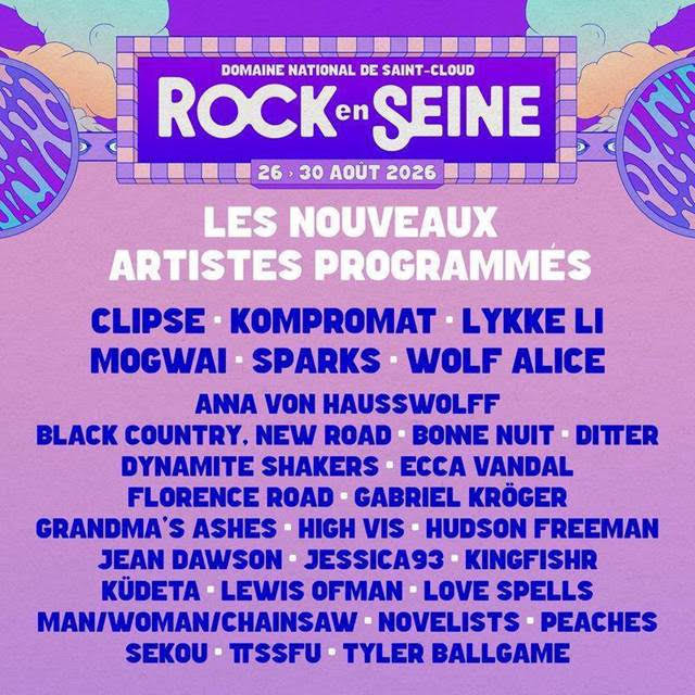 «Une autre ! Une autre ! Une autre !» Comme pendant le rappel d’un concert où le public en redemande, une nouvelle annonce de programmation vient rassasier les esprits les plus insatiables en vue de la prochaine édition de Rock en Seine. Ce sont près de trente nouveaux noms, d’horizons musicaux très variés, qui rallient aujourd’hui les rangs de l’édition 2026, doublant ainsi le nombre d’artistes qui se produiront au Domaine national de Saint-Cloud du mercredi 26 au dimanche 30 août.